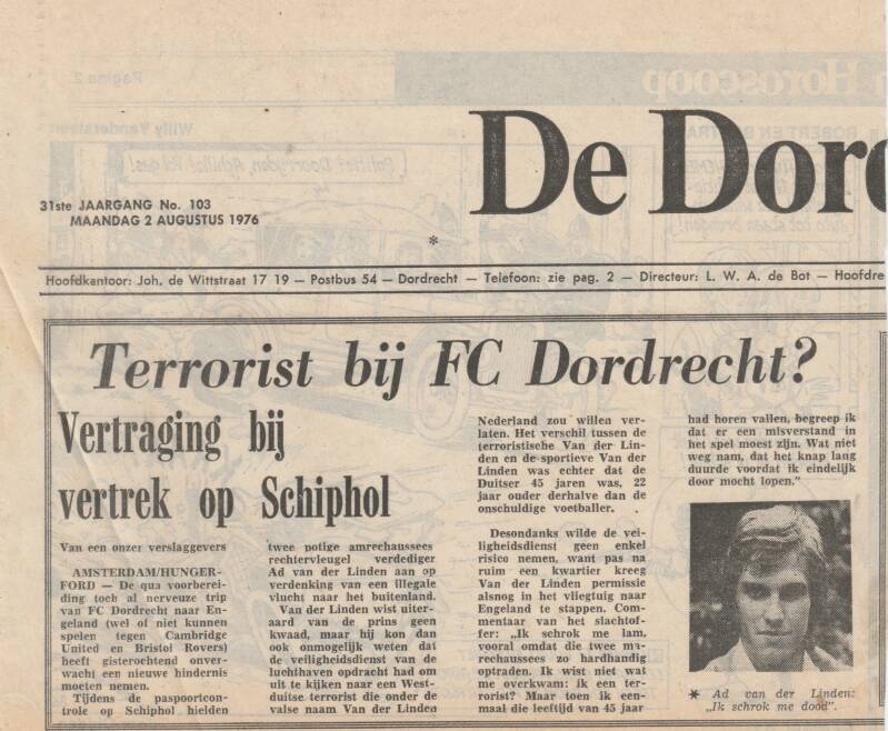 Ook nooit geweten, op de voorpagina. Ad is ooit opgepakt wegens vermeend terrorisme. Dat lag niet in zijn aard, was alleen maar verdacht vanwege zijn achternaam. Uiteraard wel schrikken geblazen.
