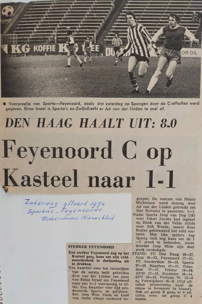 Tussen de brieven Van Feijenoord en Sparta zat een verschil van 5 dagen. Of Ad op de uitnodiging van die oefenwedstrijd is ingegaan, is bij het ter perse van deze tekst niet bekend. Het was Sparta die Ad een contract aanbood.