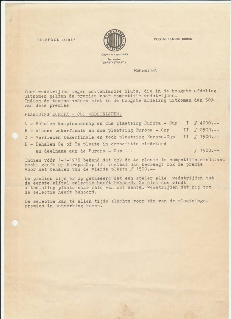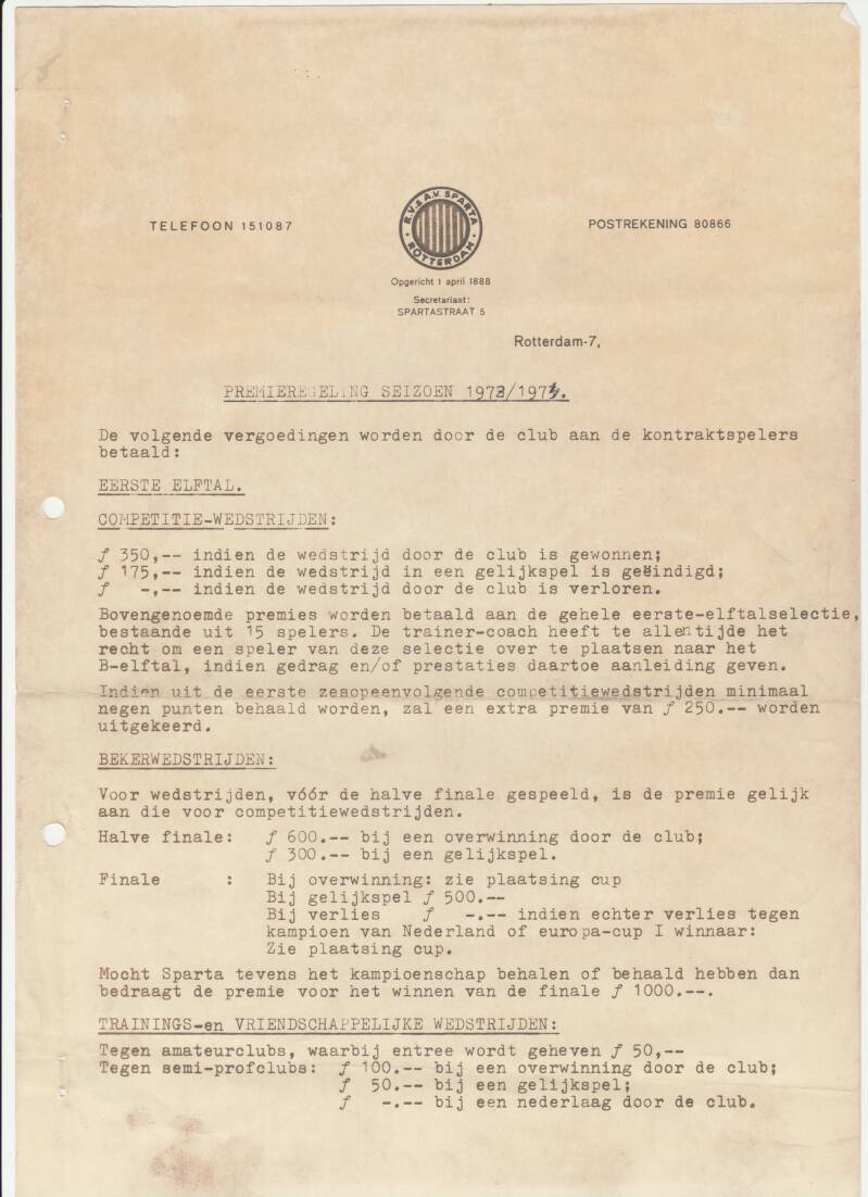 Interessant inkijkje in de premieregelingen die toen voor de contractspelers gangbaar bij aanvang seizoen 1973/74 gangbaar was. Vandaag de dag zal dat r heel anders uitzien.