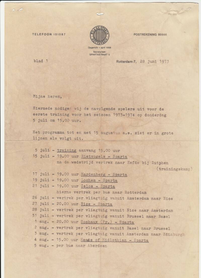 Ad's 1e training bij Sparta op een erg warme zomerdag 5 juli 1973