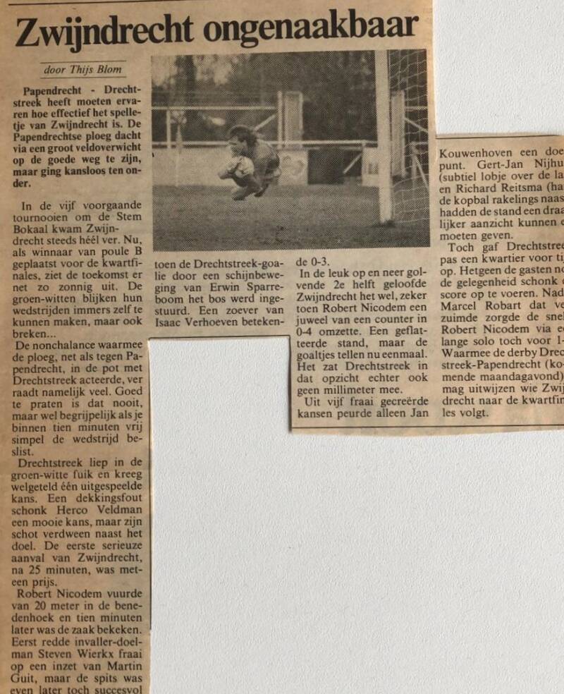 André Hendriks is er opnieuw in geslaagd, vanuit zijn appgroep met toch vooral oud vv Zwijndrecht gedienden, een mooie bijdrage te leveren. vv Zwijndrecht heeft zeker gedurende 10 jaar een zeer representatief A. Regionaal gehad. De onder vermelde verslagen aangaande De Stem van Dordt Bokaal spreekt dan ook boekdelen.