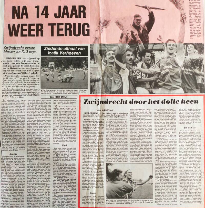 Laatste historische huzarenstukje zo ongeveer in het het bestaan van vv Zwijndrecht. Een talentvolle lichting promoveerde naar de 1e Klasse.