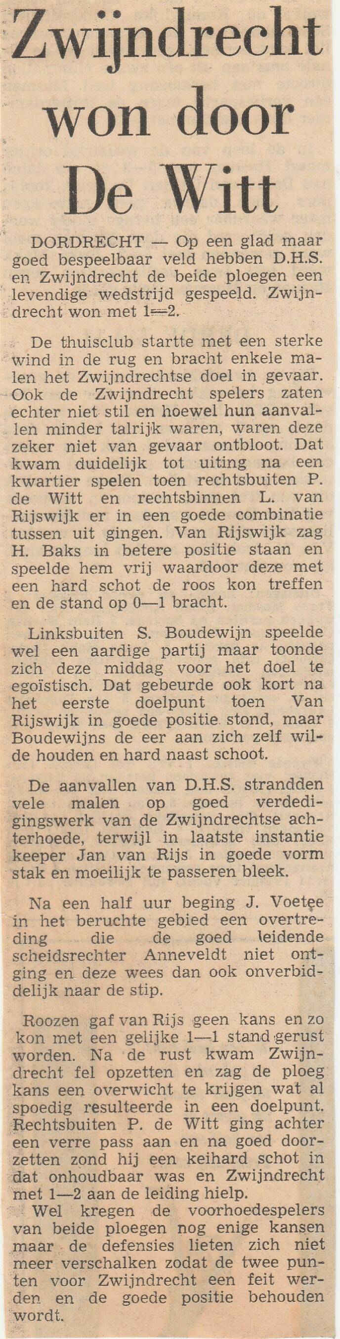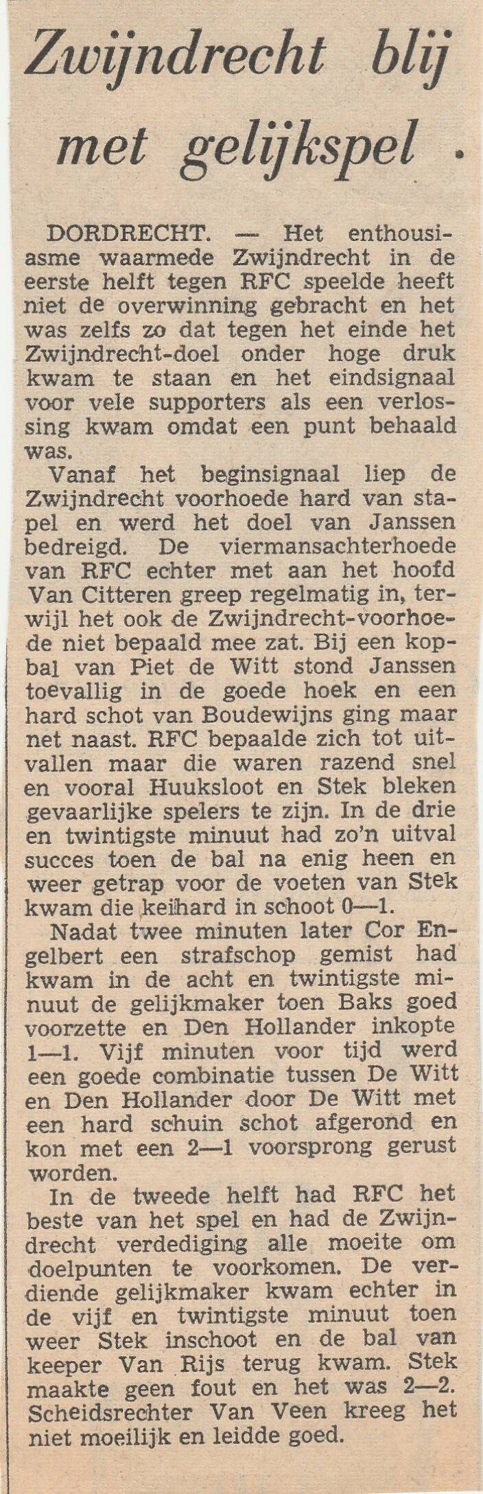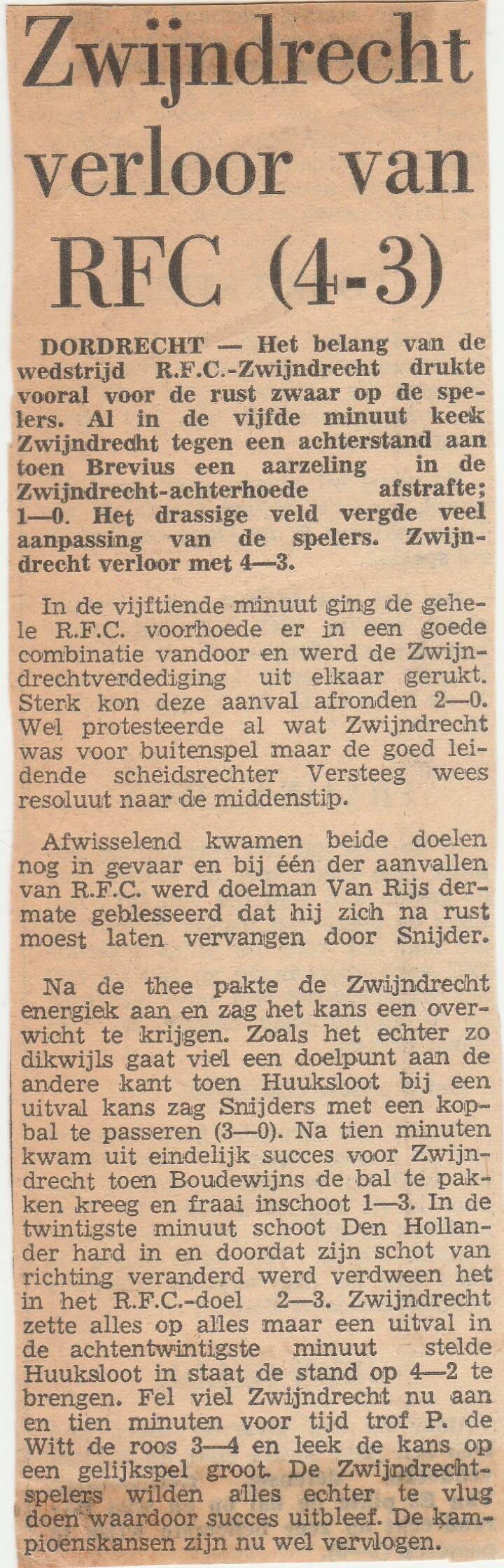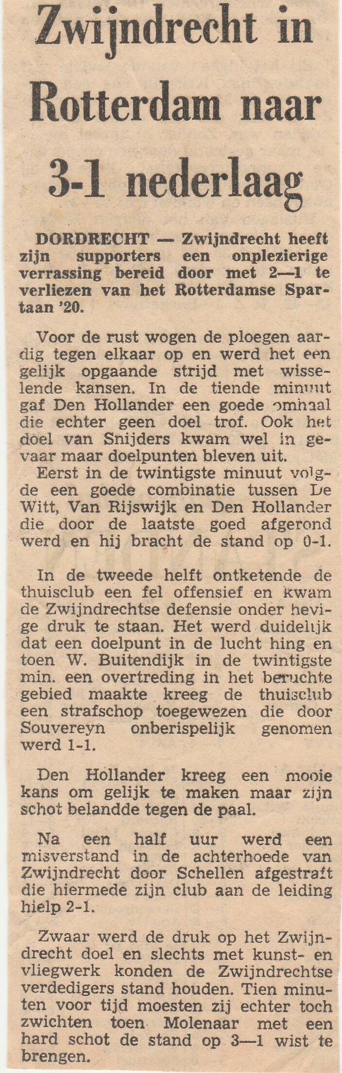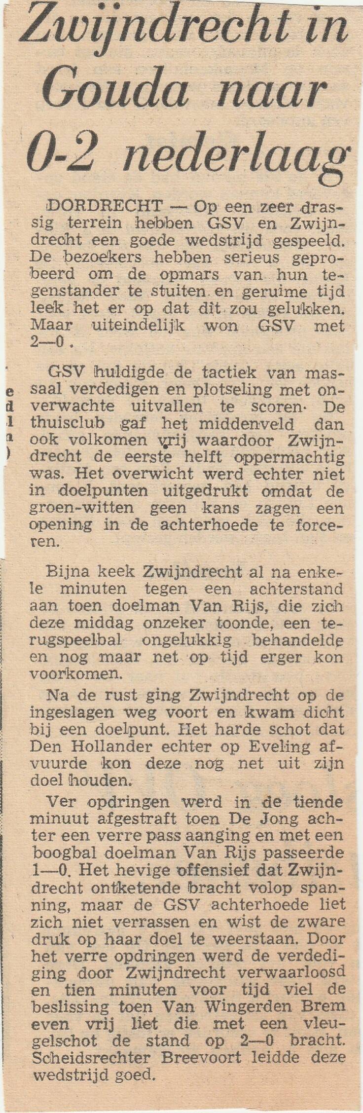 Hier twee gerenommeerde buitenspelers samen in beeld. Sjors op links met zijn George Best achtige dribbels en gezegend met een loeihard schot. Piet had andere kwaliteiten. Die had de nodige snelheid voor een rechtsbuiten, kon zijn tegenstander ook uitspelen en had bovenal een neusje van uit het niets gemaakte doelpunten. Met Gerrit den Hollander en ook Gerrit Hollander kunnen we stellen dat vv Zwijndrecht destijds een waardevolle en levensgevaarlijke voorhoede had.