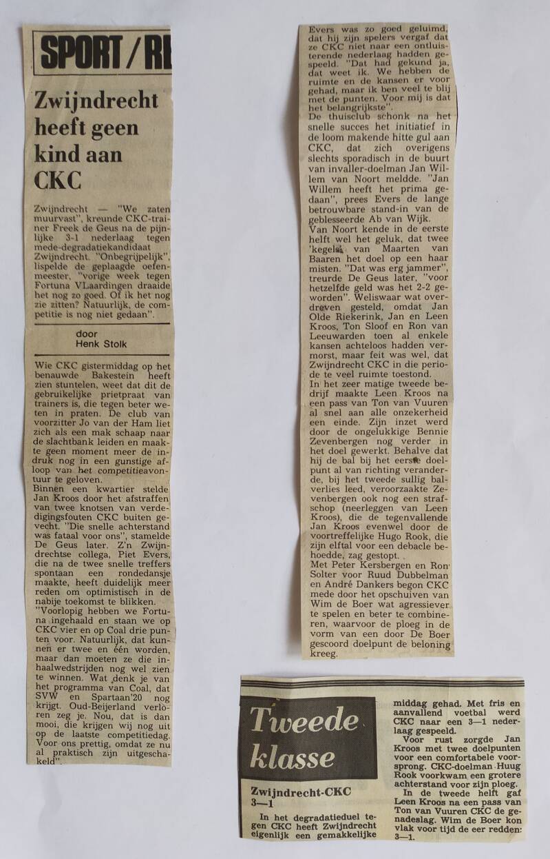 Verslagen van de wedstrijd Zwijndrecht_CKC per 16-05-1982