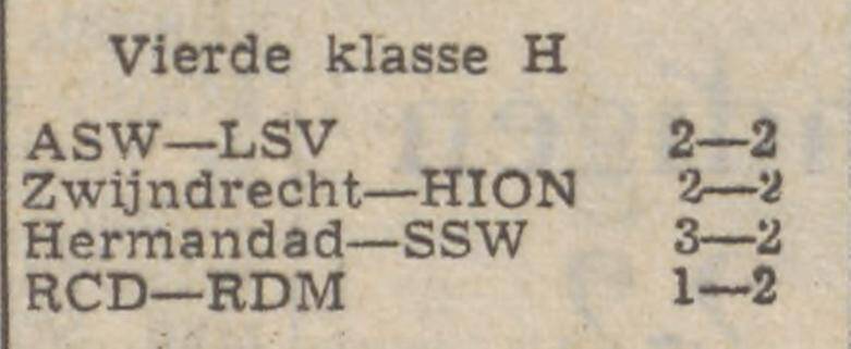 ASW, 's Gravendeel, Hardinxveld, Hermandad, HION, LSV, OSS, RCD, RDM, Strijen en SSW.