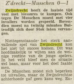 Onderstaand en voor zover kunnen achterhalen, de resultaten van Zwijndrecht 1 gedurende het seizoen 1960/61.
