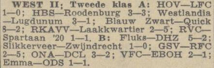 DCL, DHZ, EMMA, EBOH, FLUKS, GSV, ODS, ONA, RFC, SLIKKERVEER en VFC. Op 12 sept. 1965 te beginnen met een thuiswedstrijd tegen Slikkerveer.