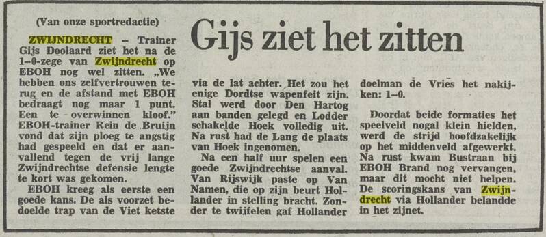 In de onder geplaatste verslagen zijn opvallende namen terug te vinden. Wat te denken van Hans Galjé. Speelde in de jeugd van De Hollandsche Leeuw (DHL) en kwam op 17-of 18 jarige leeftijd in het 1e. Zijn talent viel al gauw op en vertrok na dit seizoen naar ADO, waarna Ajax hem in 1980 overnam. Kwam vanaf 1986 daarna weer voor meerdere clubs in Belgie uit. Heeft vanaf 1976 t/m 1993 als doelman in het betaalde voetbal dus een lange carrière gekend.