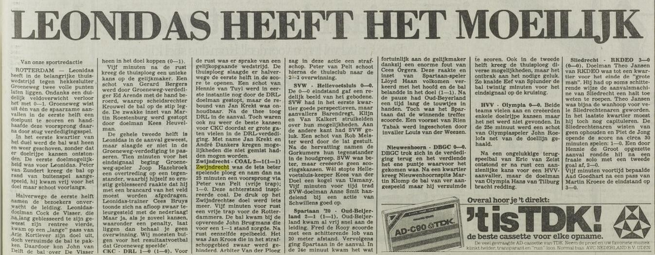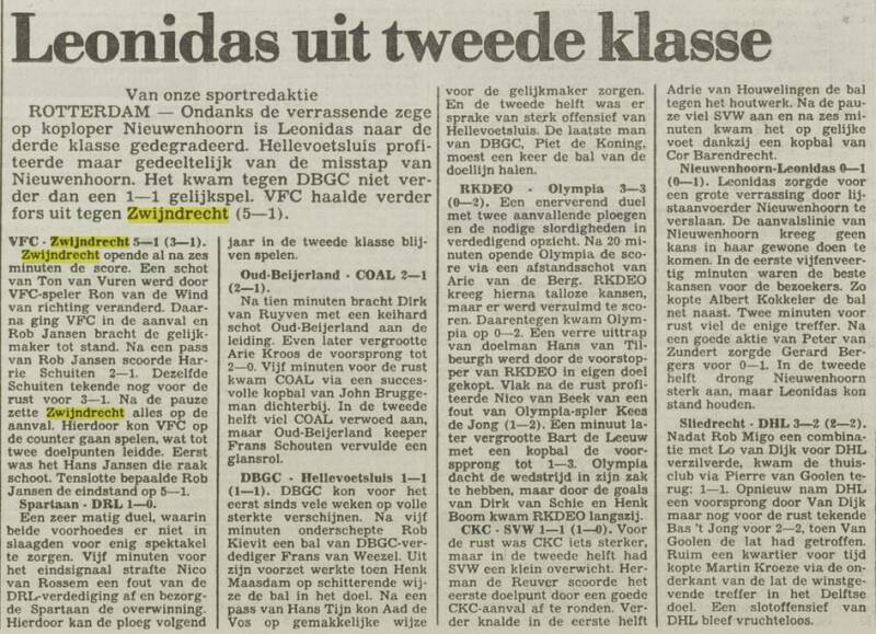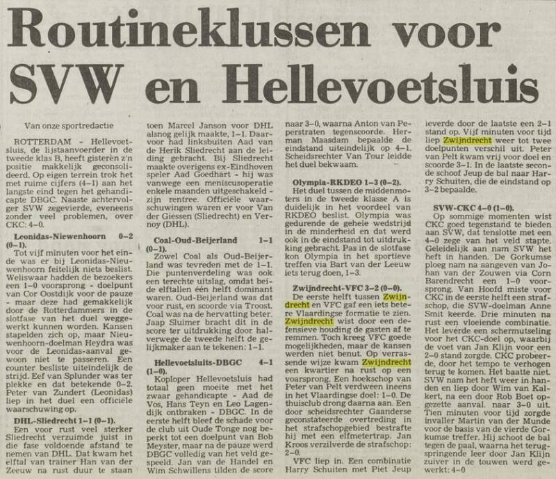 Seizoen ouverture per 7 september 1980 begon met de wedstrijd Hellevoetsluis - Zwijndrecht met de uitslag 5-3