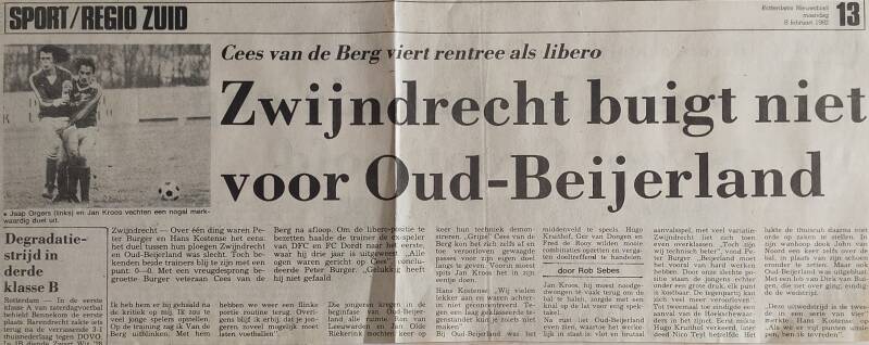 Maar liefst 4 verslagen van de wedstrijd Zwijndrecht - Slikkerveer per 03-05-1982